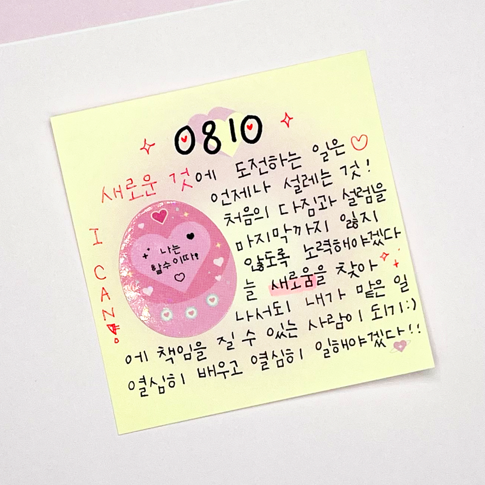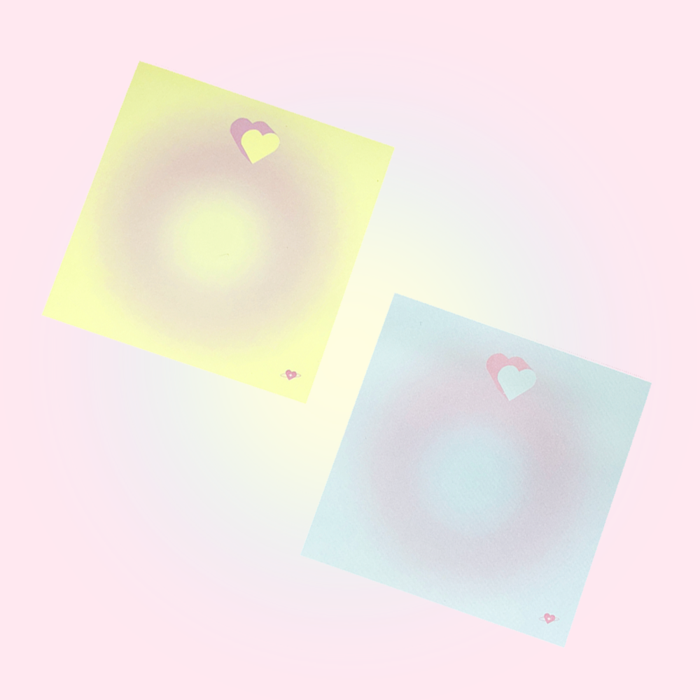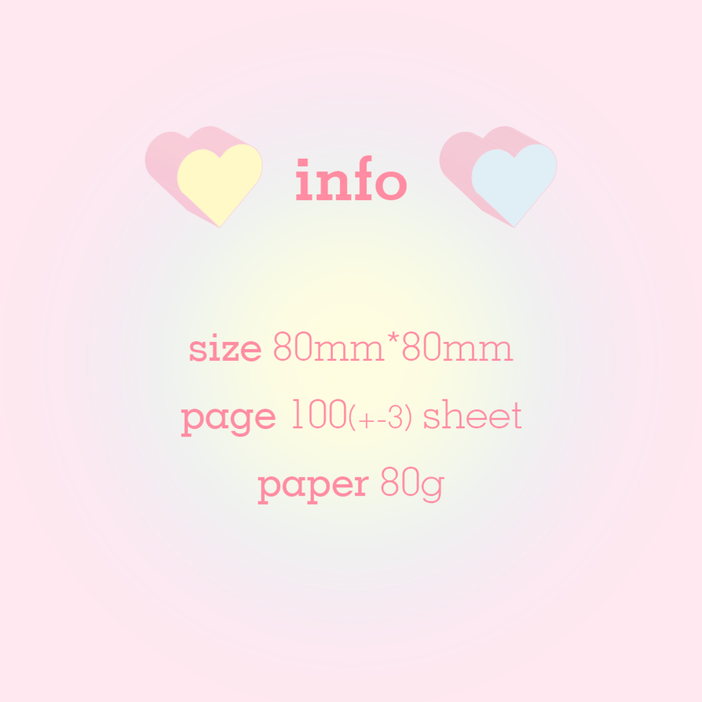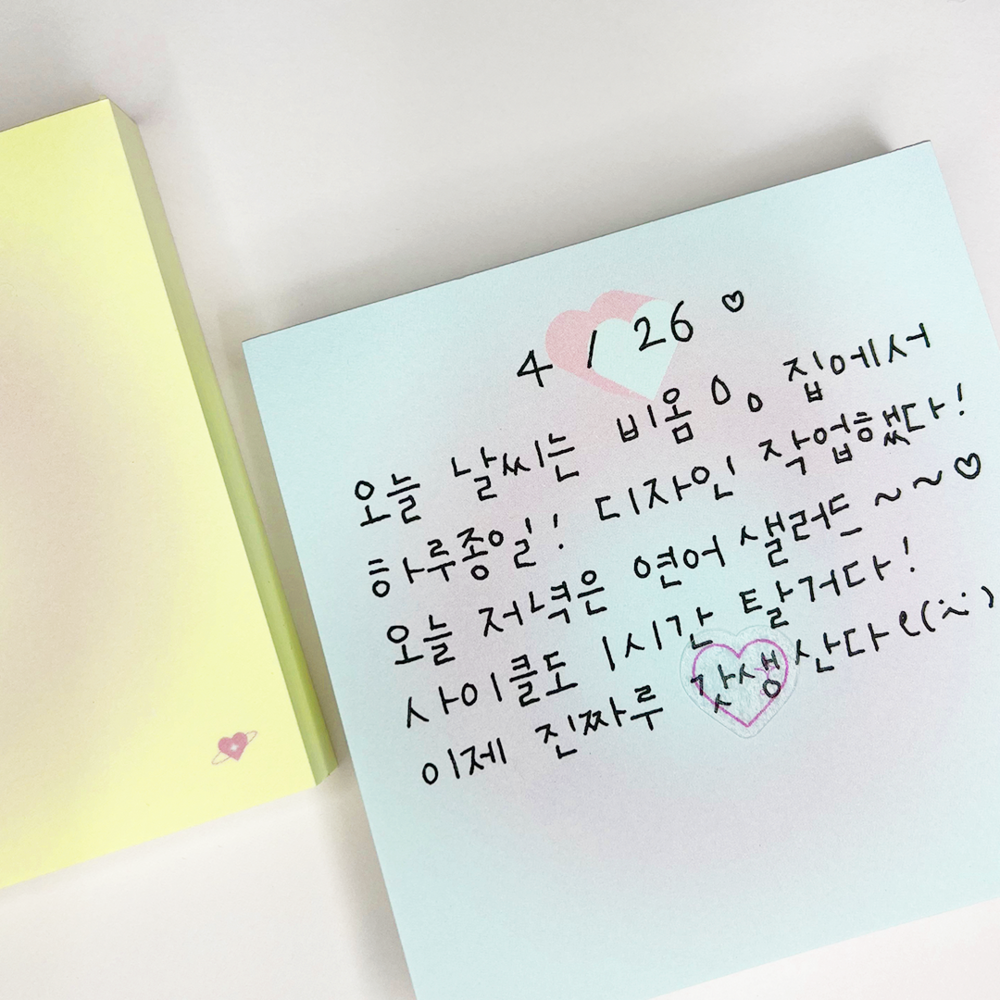 귀여운 하트가 포인트인 파스텔톤의 은은한 그라데이션 떡메모지입니다.