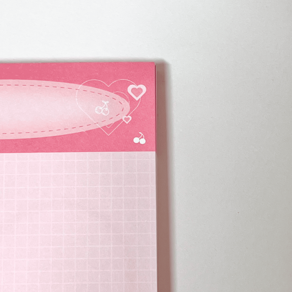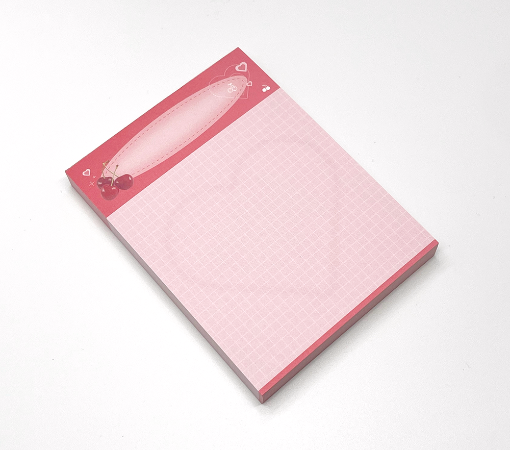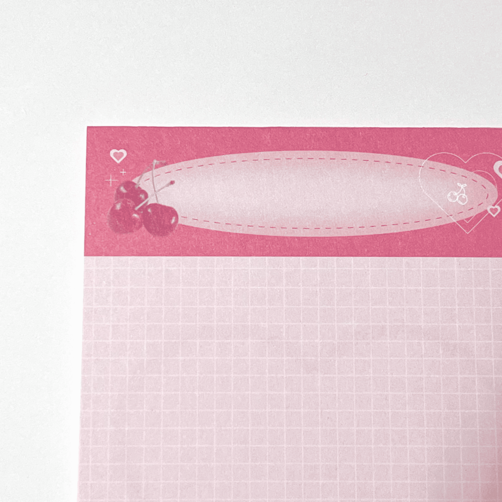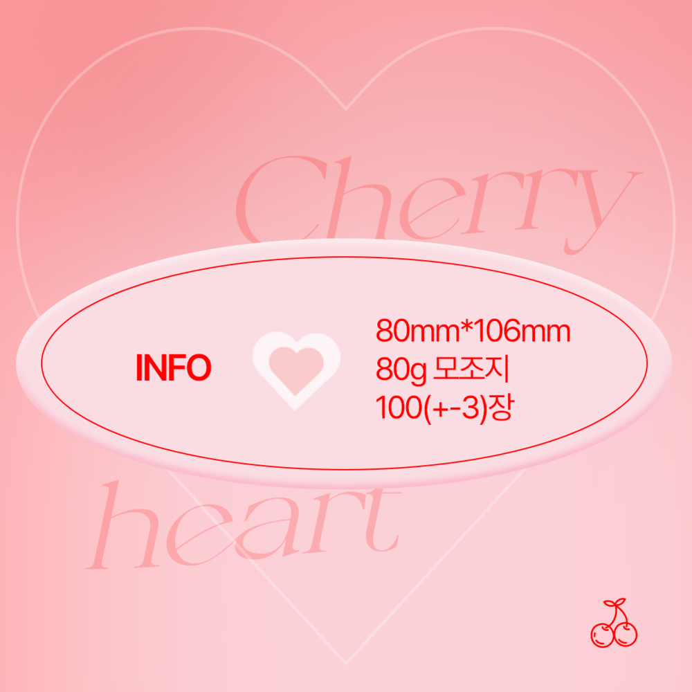 키치한 감성의, 귀여운 체리와 하트가 포인트인 체리 색감의 떡메모지입니다.